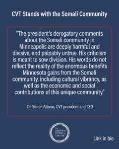 “The president’s derogatory comments about the Somali community in Minneapolis are deeply harmful and divisive, and palpably untrue,” said Dr. Simon Adams, president & CEO, in this statement in response to recent negative remarks from President Trump. “His criticism is meant to sow division. His words do not reflect the reality of the enormous benefits Minnesota gains from the Somali community, including cultural vibrancy, as well as the economic and social contributions of this unique community,” Simon said.